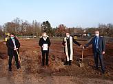 Mit der Übergabe der Baugenehmigung durch Landrat Thorsten Stolz an die Vertreter der Kirchengemeinde St. Klara und Franziskus, Hanau-Großkrotzenburg – in Anwesenheit von Bürgermeister Thorsten Bauroth - konnten die Erdarbeiten für den Neubau der Kindertagesstätte St. Laurentius in Großkrotzenburg am 1. März 2021 beginnen. Für die Kirchengemeinde waren Martin Palzer und Thorsten Plahusch vom Verwaltungsrat St. Laurentius, sowie Dechant Andreas Weber als Pfarradministrator mit Pfarrer Christian Sack und der stellvertretenden Vorsitzenden des Verwaltungsrates Frau Ricarda Sommer-Charrier anwesend, sowie Verwaltungsleiterin Iris Simon und Baukurator Heiko Ehnert.